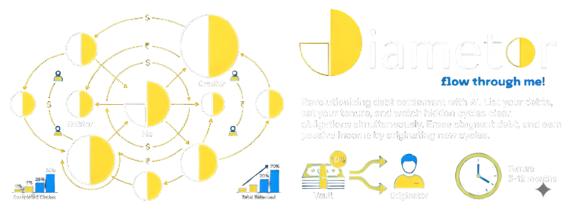 Diametor is an AI-powered clearing engine. We don’t provide loans; instead, we identify "debt cycles" (e.g., A owes B, B owes C, and C owes A) and settle them simultaneously. We use technology to restore the flow of money without requiring new cash to enter the system.