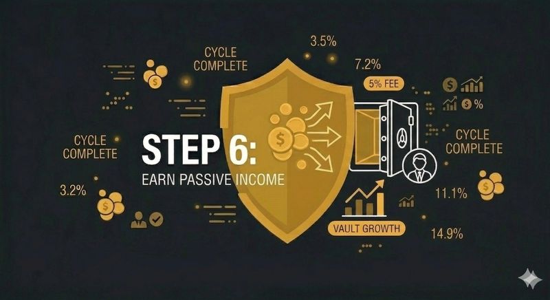 As cycles complete, 5% of the fee flows back to you as the Originator. Your initial vault deposit grows while the AI works for you.